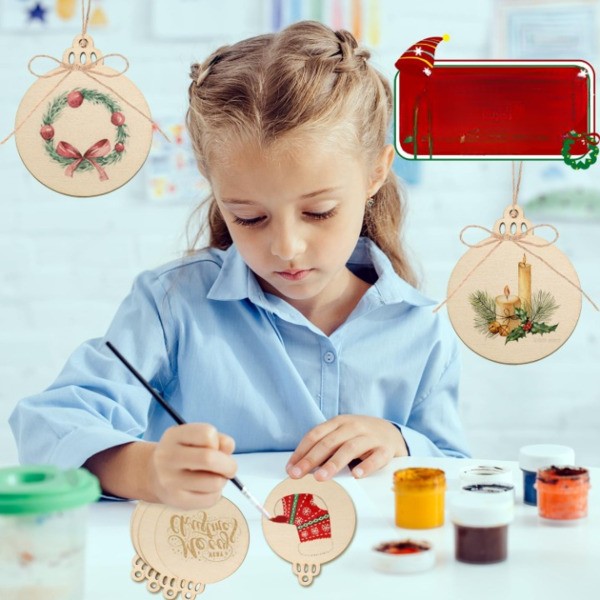 Трансформирајте го вашиот божиќен декор со 30 предбушени дрвени дискови од прва класа, совршени за создавање персонализирани украси кои додаваат рустичен шарм на вашата божиќна елка.