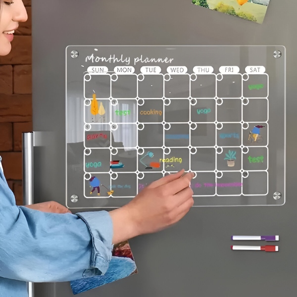 📐 Сет од 2 табли, секоја 40 x 30 cm – проѕирен акрил, работи на која било стандардна магнетна површина на фрижидер, вклучени маркери и крпа