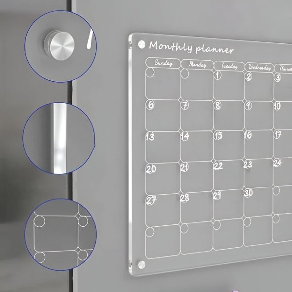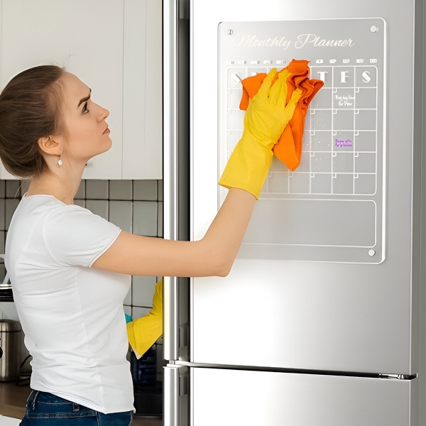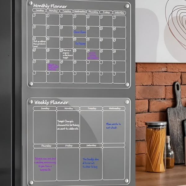 Хартиените планери се трошат по еден месец и одат директно во ѓубре. Проѕирната акрилна површина целосно чисто се брише за секунда со вклучената крпа – без дамки, без траги, без остатоци. Површината е отпорна на гребаници и дамки, така што останува кристално чиста по стотици бришења.