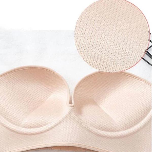 Силиконската подлога, која се прилепува за кожата, осигурува дека сутиенот останува цврсто на место без да се лизга.
