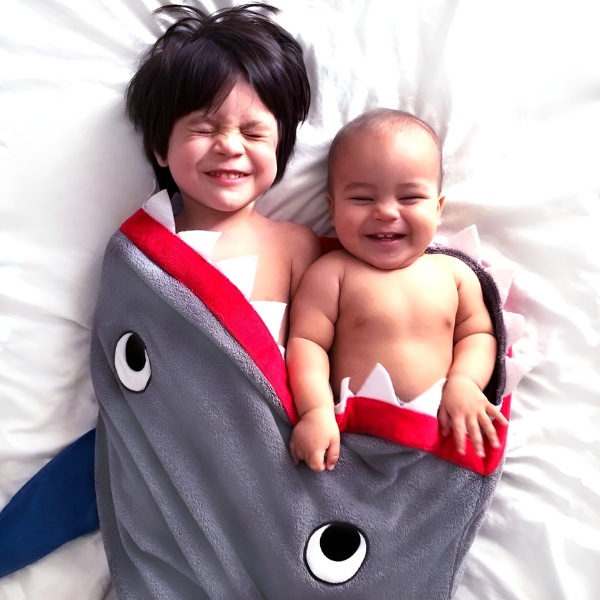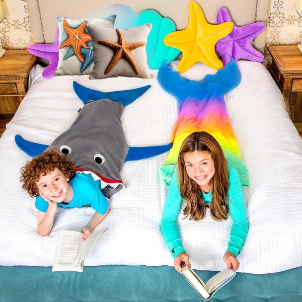 Изберете меѓу ќебе со опашка од ајкула или сирена. Идеално за енергични деца кои сакаат да играат и претставуваат, ова ќебе го задоволува нивниот див аспект додека ги држи топли.