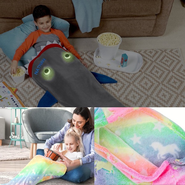 Висококвалитетниот мек плиш ги држи децата топли додека се опуштаат по училиште или се подготвуваат за спиење. Тоа е совршено за гушкање на каучот додека гледаат цртани филмови или за да останат топли во ладните ноќи. Вашите деца ќе се насмеат од радост кога ќе се завиткаат во опашката од ајкула или сирена.
