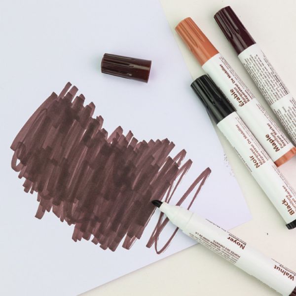 Со 8 маркери и 8 восочни бои во нијанси на храст, цреша, орев, махагони, јавор, црно, сиво и бело, нашиот комплет овозможува совршено усогласување на секоја оштетена површина. Мешајте и комбинирајте бои за идеална реставрација на дрвото.