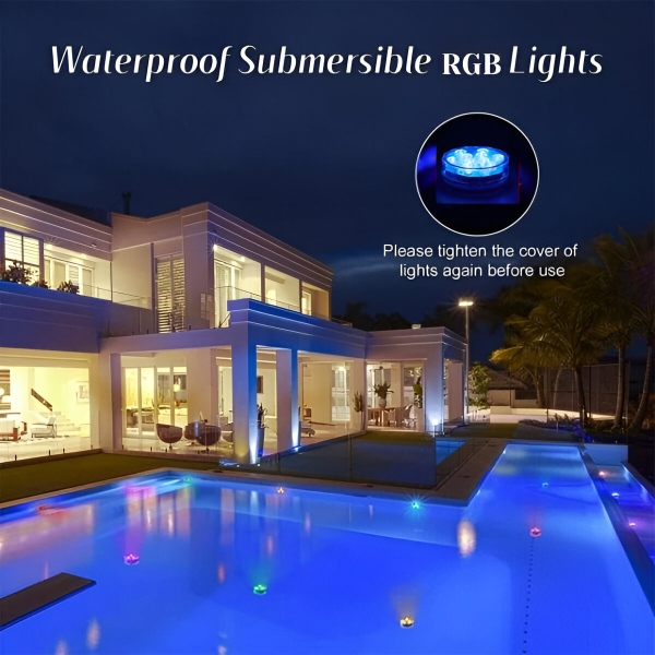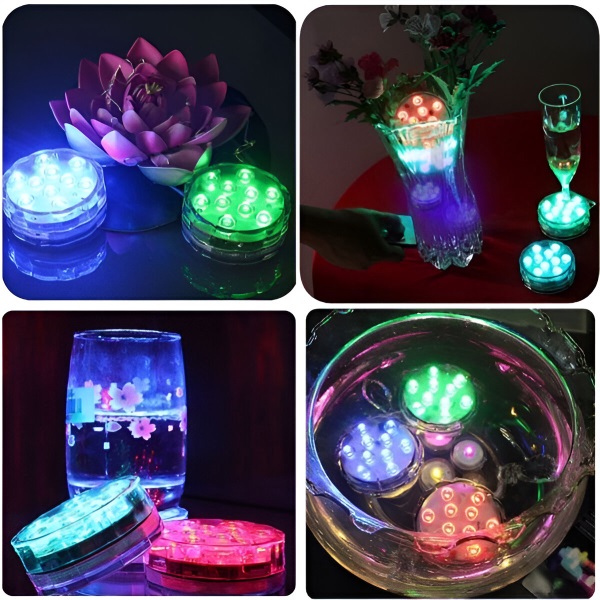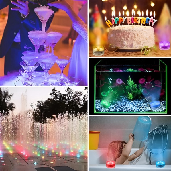 Без вишок кабли, без искри! Подобруваат атмосферата во секој аквариум, сад со вода или кофа со мраз со леснота. Овие мини водени светла со живописни бои со елеганција украсуваат базен, аквариум, саксија или кој било друг украсен предмет. Без разлика дали станува збор за забава или мирна вечер, овие разновидни RGB светла веднаш ќе го подобрат околниот амбиент.