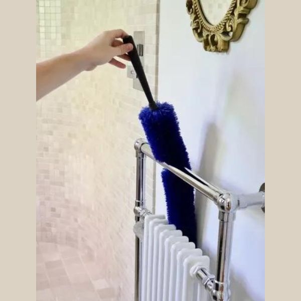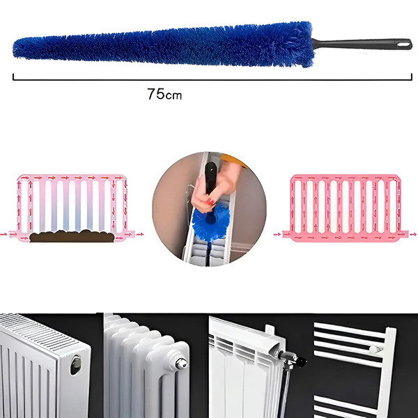 Не е потребно отстранување на решетките на радијаторите. DUSTOFF е специјално направен за чистење на радијатори. Неговата електростатичка наелектризираност привлекува прашина и нечистотија, што го прави идеален за радијатори со панели, колони, ребра, скали и за сушење пешкири.
