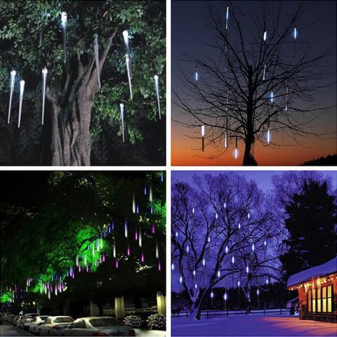 Метеорски дожд Ефект кој создава романтична атмосфера: LED светла со ефект на метеорски дожд. Светлината на секоја сијалица се вклучува и исклучува последователно и брзо, симулирајќи метеорски дожд или снег што паѓа на ноќното небо. За волшебна атмосфера.