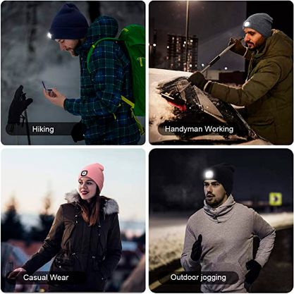 • Топлата и модерна капа со LED светло е соодветна за двата пола.