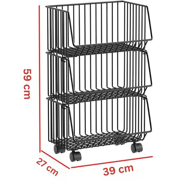 За чување и лесен пристап до зеленчук, овошје и артикли од шпајзот. Трите прилагодливи кошници овозможуваат персонализирање на просторот во кујната и одржување на уреден изглед.