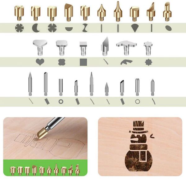 Овој мултифункционален сет со различни додатоци за заварување и изгорување на дрво, ќе ви овозможи да создадете сè што можете да замислите. Идеален е за работа со материјали како дрво, кожа, восок или плута. Всестраниот заварувач може да се користи и за други заварувачки работи кои бараат висока прецизност.