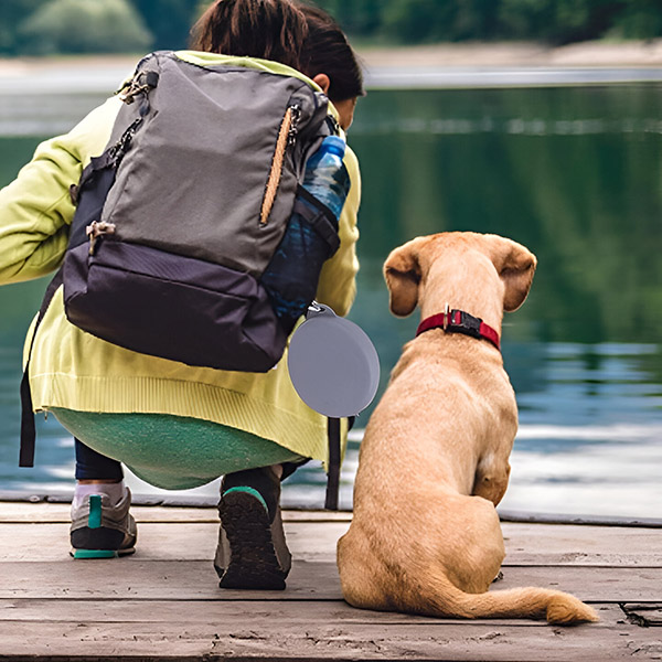 Оваа склоплива чинија го организира храната и водата на вашиот домашен миленик. Лесна и компактна, лесно се закачува на торби и колани со вклучениот карабинер. Идеална за авантури на отворено, пешачења, кампување и секојдневна употреба.